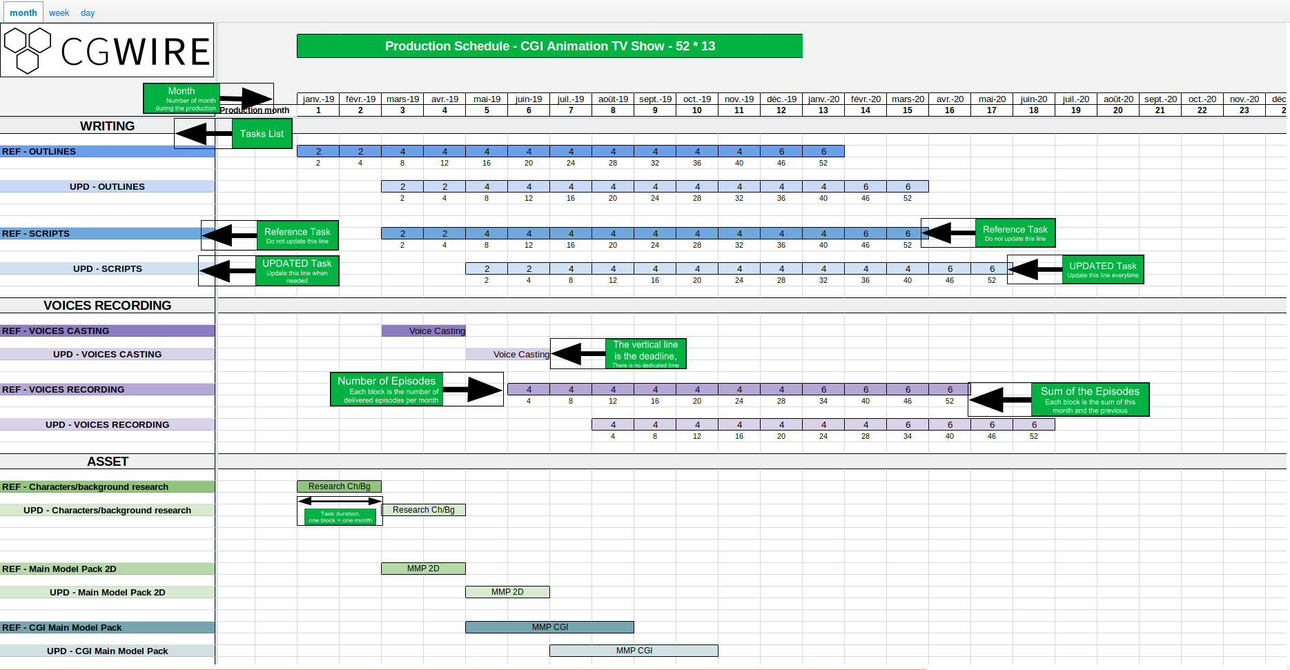 We understand that you are accustomed to spreadsheets and that transitioning to a new tool can be challenging. Even if you are not ready to use Kitsu, we want to assist you. That's why we've prepared production-ready spreadsheets for you. You can use them as a starting point to build your workflow or keep them throughout your production. Everything is free and licensed under Creative Commons BY-NC-SA 2.0. Enjoy!